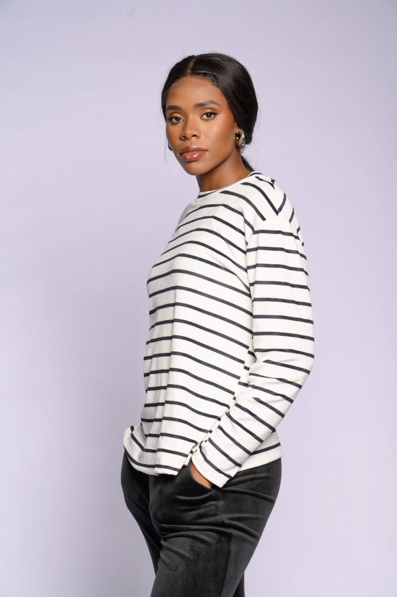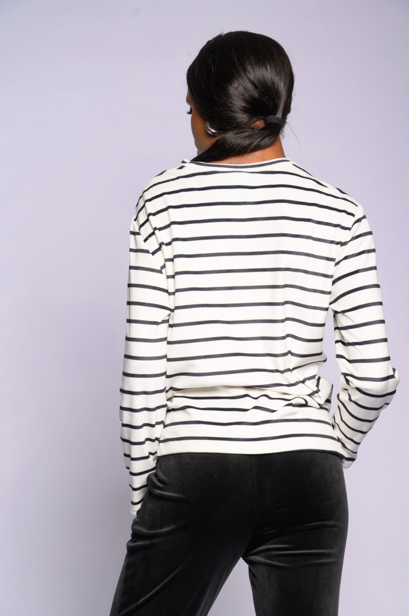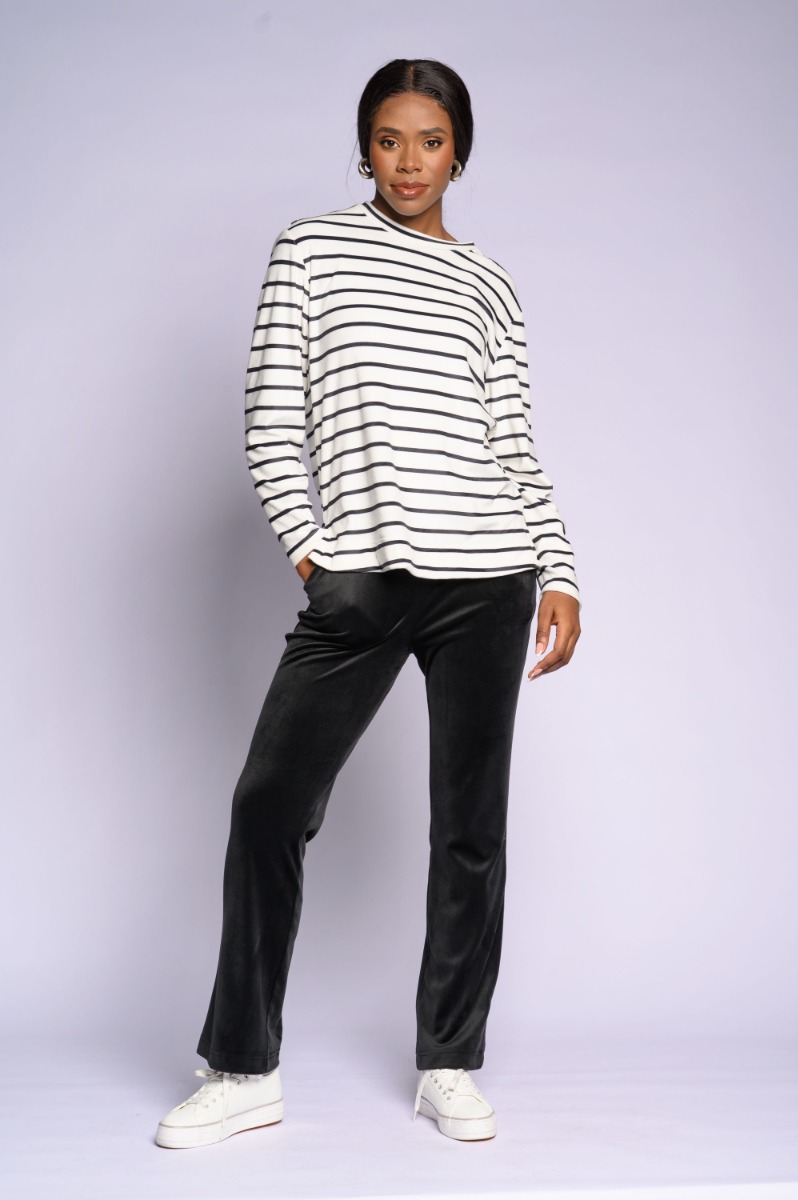 Black Stripe Velour Top