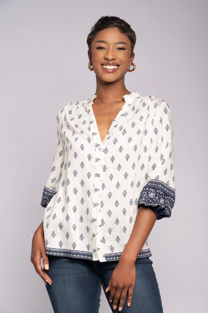 Print Border Blouse