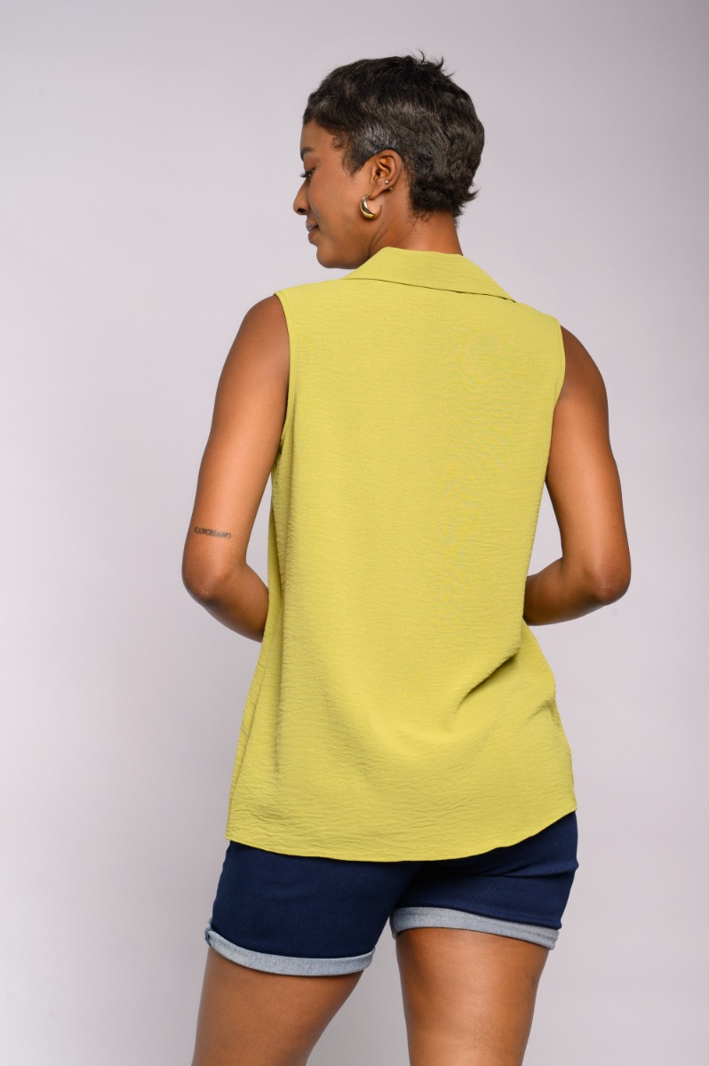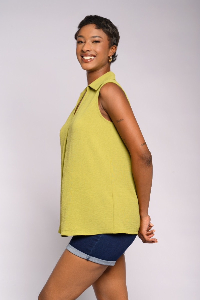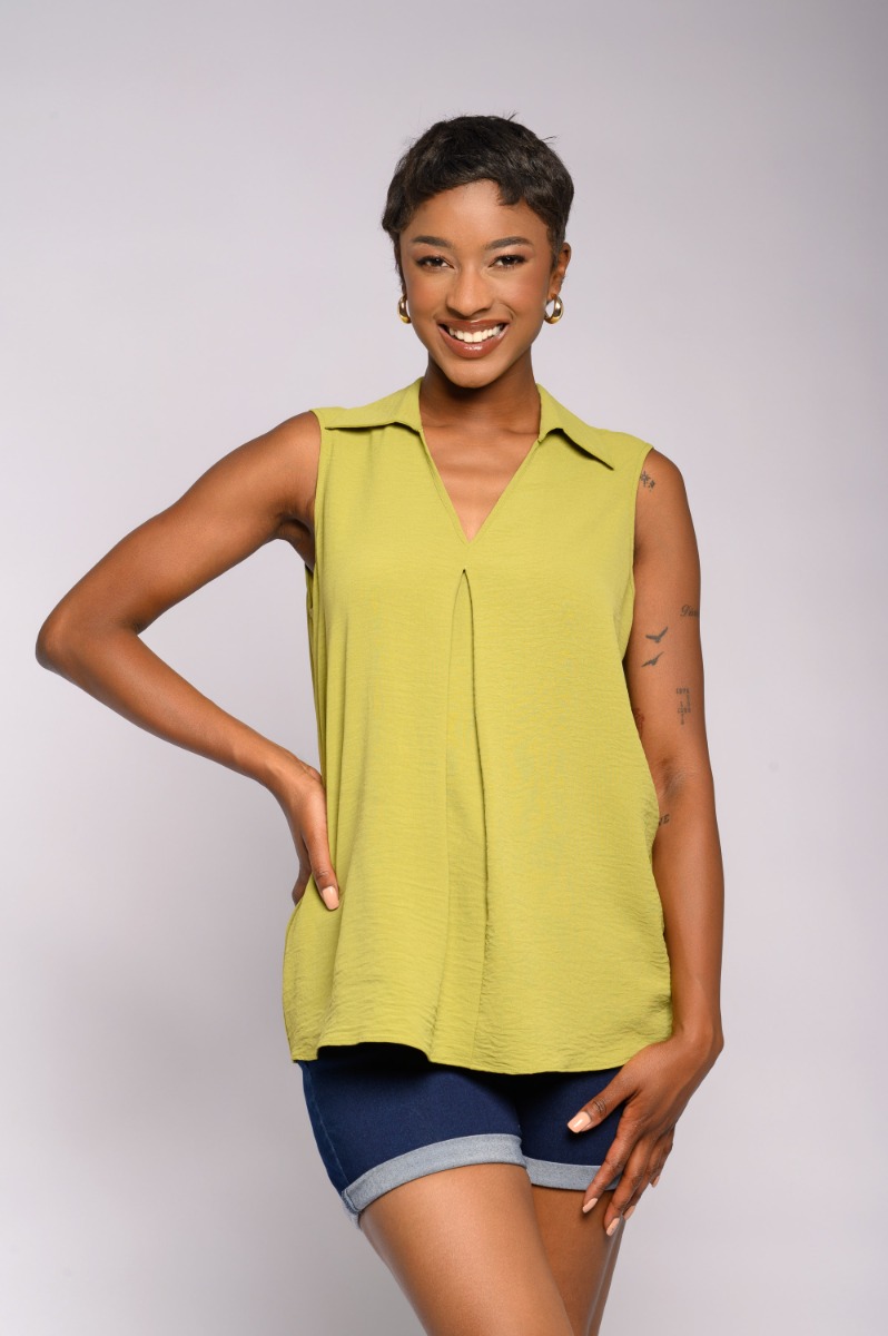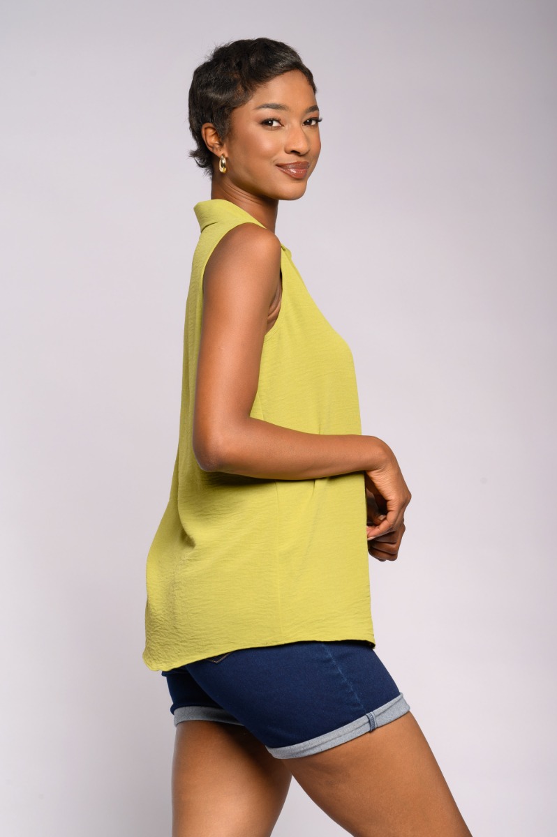 Sleeveless Plain Collar Top