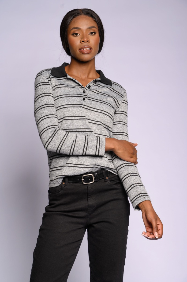 Stripe Collar Knit Top