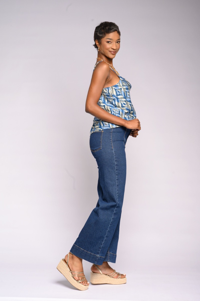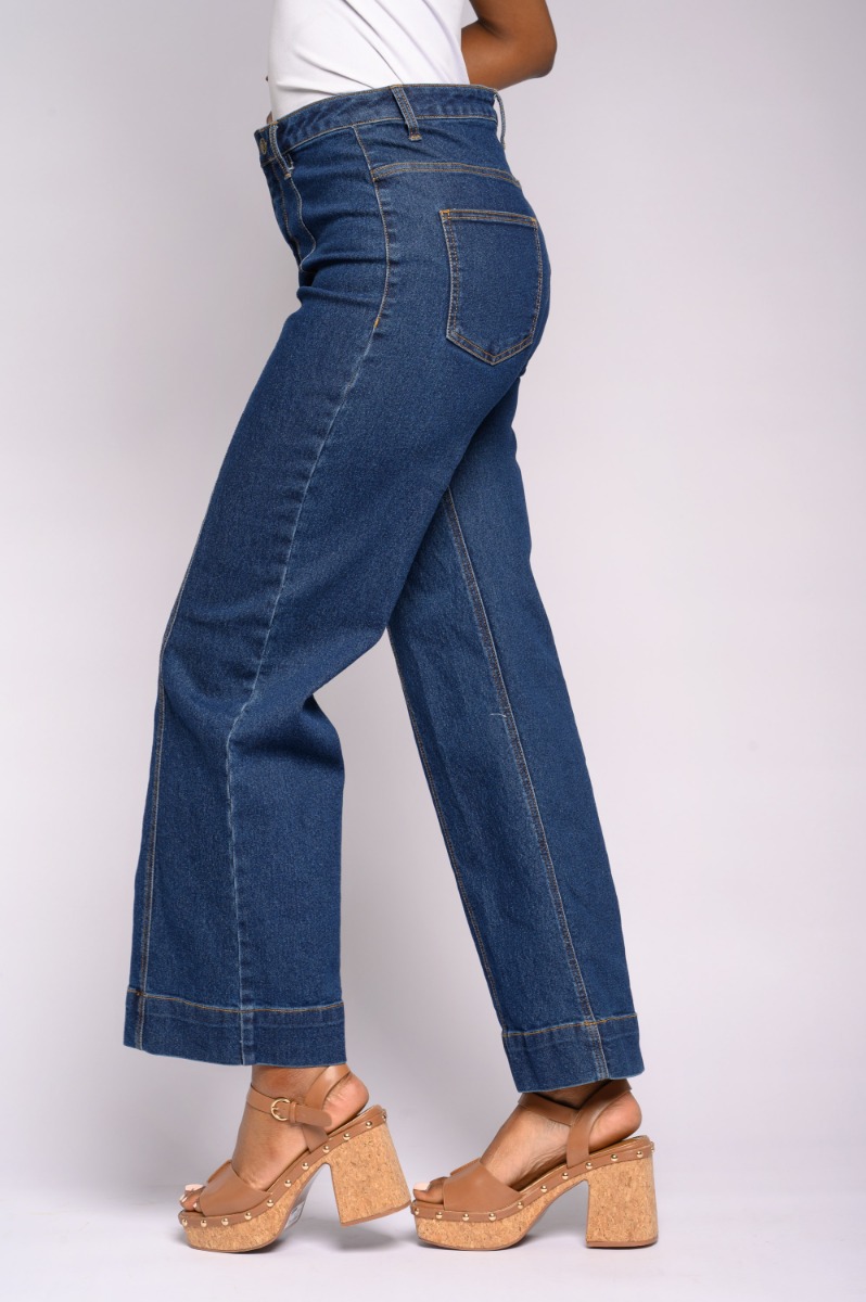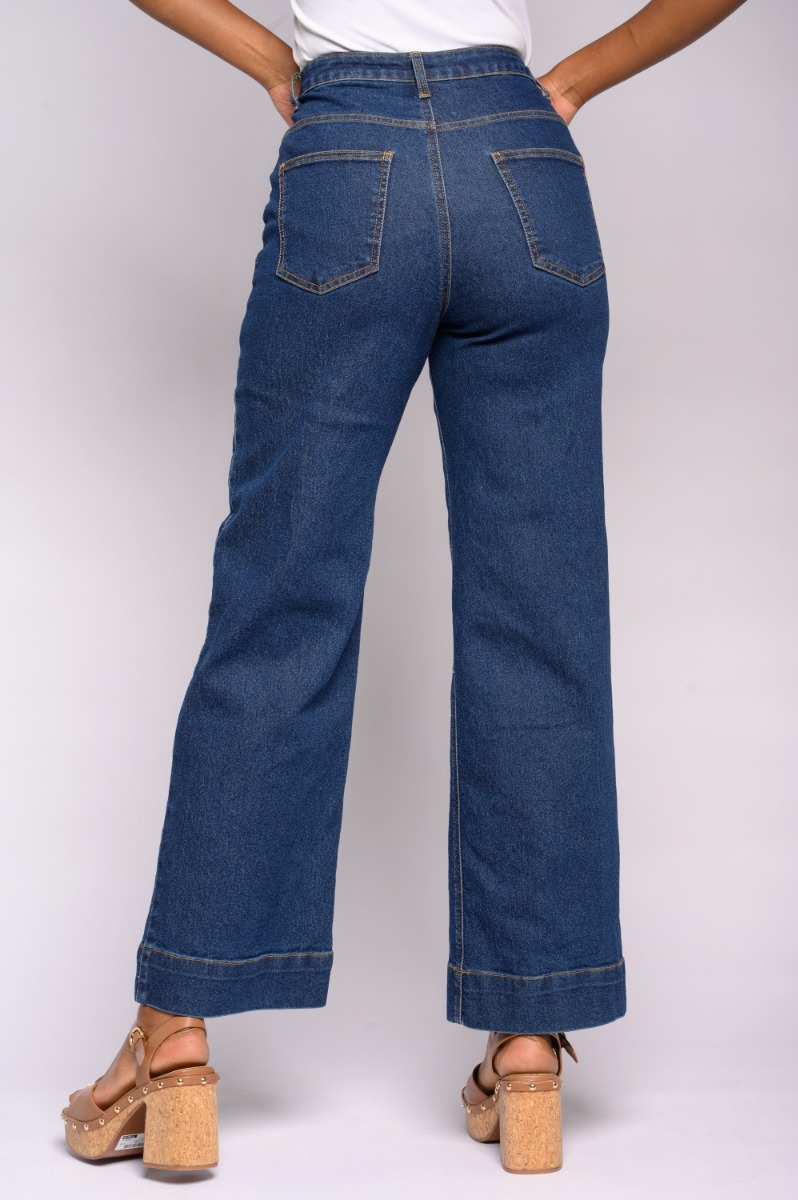 Tie Belt Wide Leg Denim Bottoms